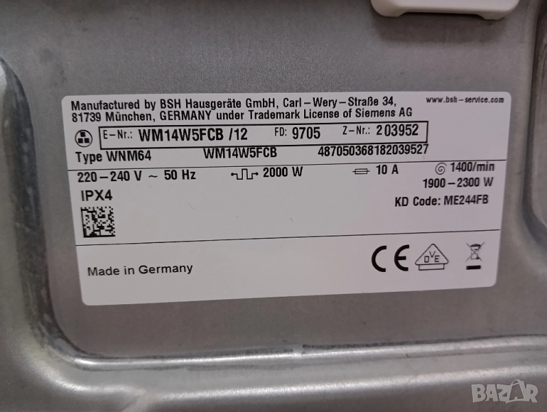 Пералня Сименс Siemens IQ 700 A+++ 9кг Made in Germany 2 години гаранция!