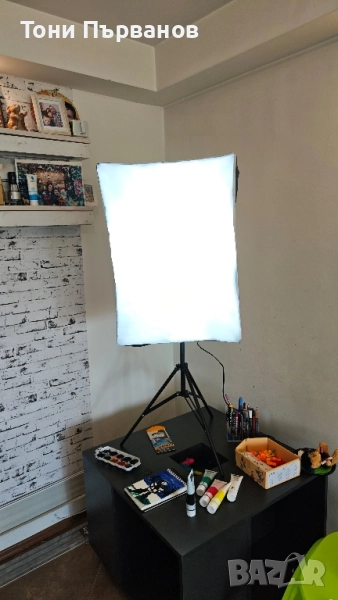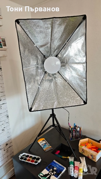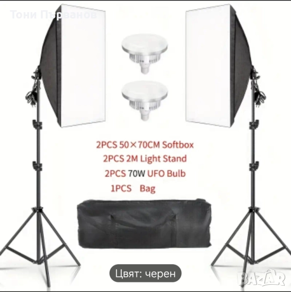 Чисто нов Softbox комплект за снимки и видео! ✨ Какво включва комплектът? 2 големи лампи по 70W – мощно и равномерно осветление Регулируема светлина с дистанционно – увеличаване, намаляване и промяна на тона 2 стабилни стойки Бяло платно за разсейване на светлината Удобно сакче за пренасяне Перфектен избор за фотографи и видеографи, които искат професионално осветление у дома или в студиото. 📩 Пиши на лично за повече информация или снимки!