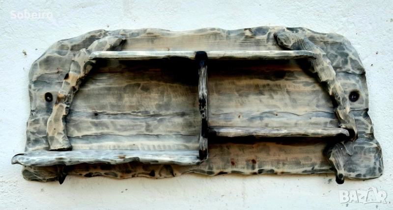 Допълнителна информация Етажерката е ръчна изработка! Дървото е ела. Размери: 87см/33см. Подходяща е за битово помещение, механа, барбекю, навес, балкон. Аранжирана е съвсем примерно, но търпи всякаква аранжировка.