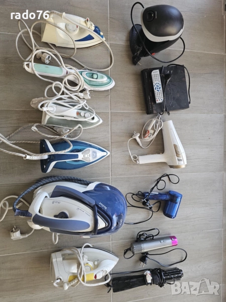 Продавам пакет от електроуреди, включващ 6 парни ютии, 4 сешоара, кафе машина Schwarzkopf, DVD плеър и преса за коса. Уредите са внесени от Австрия.