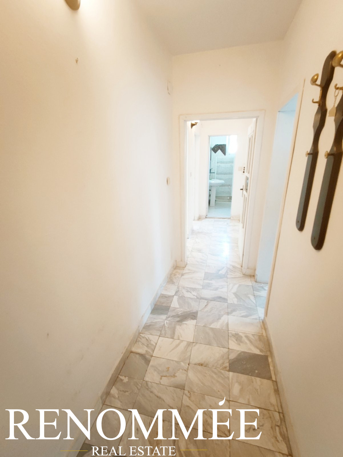 Разпределение - входно антре - голям коридор, три непреходни стаи - две от тях са обзаведени като спални, едната спалня е с баня и тоалетна, третата стая може да бъде трета спалня или например офис, в зависимост от нуждите на наемателите, отделна трапезария с кухня, втора баня с тоалетна, мокро помещение - склад, две големи тераси - едната тераса е към трапезарията, друга огромна тераса е с излаз от трите стаи.