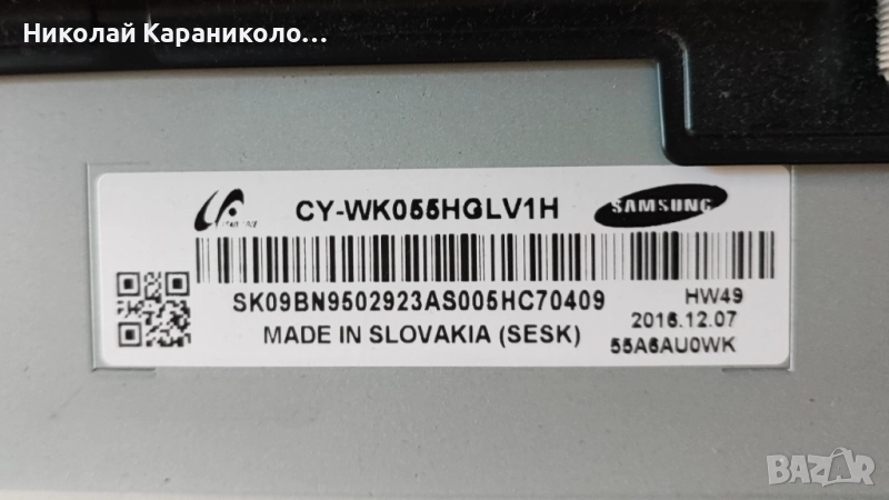 Продавам тв SAMSUNG UE55KU6179U за части по причина-счупена матрица/CY-WK055HGLV1H/.Редовни съответно: