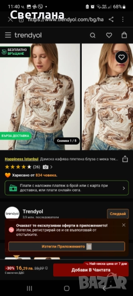 С етикет Блузка по тялото, Trendyol, S размер → Обява 51439689