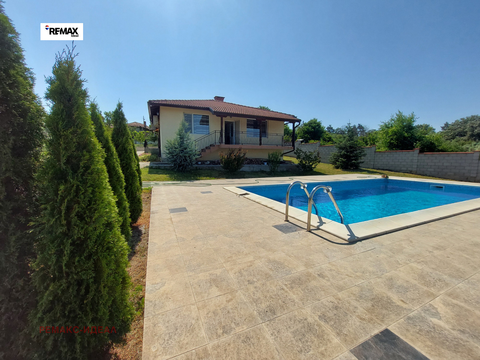 RE/MAX ексклузивно представя нова къща в перфектно състояние на 35мин. от Варна и 15мин. от най-красивият български плаж - Камчийски пясъци. Имот собственост на чужди граждани, който е обитаван само сезонно. Няма видими амортизации. Обзаведен е с всичко необходимо за едно домакинство, централно парно и климатици. Представлява къща с огромен, светъл дневен тракт, тераса, три спални и два санитарни възела. Долепена към нея и включена към парното е втора къща за гости. В двора с площ от 1890кв.м. има добре потдържан басейн с всички прилежащи агрегати и голям гараж.