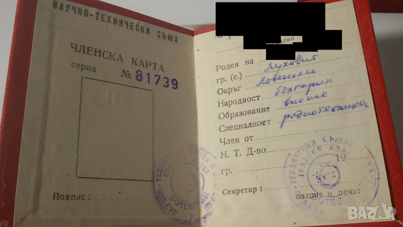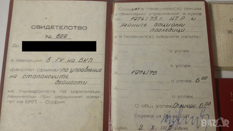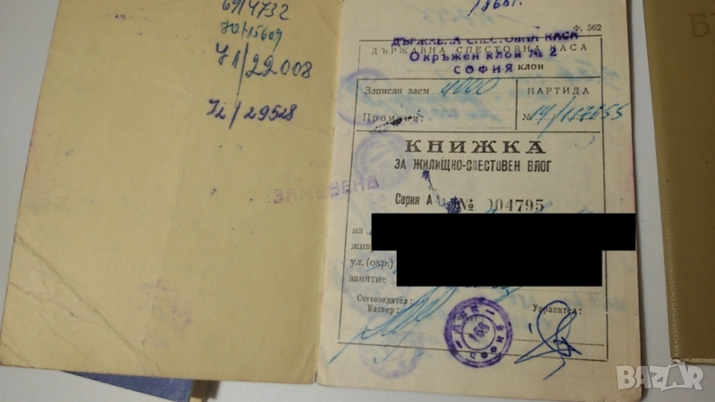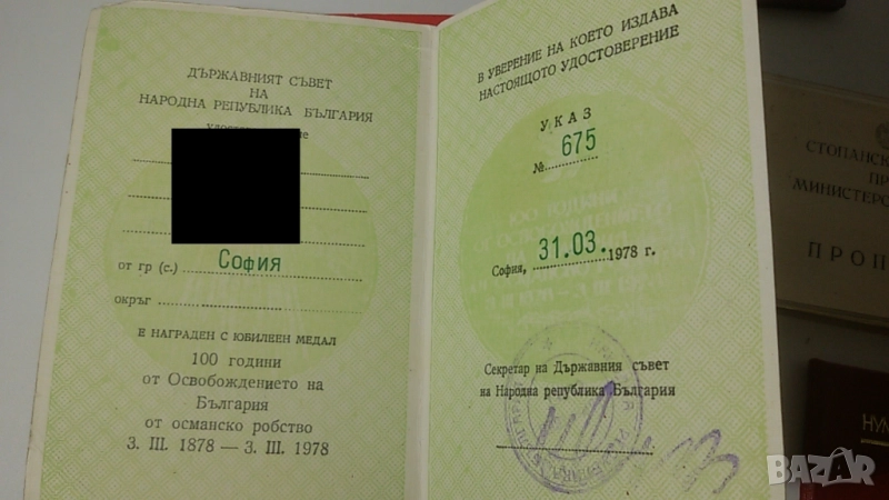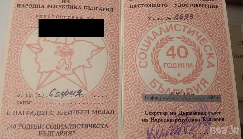 Лот 20-тина старинни документи (партийни членски карти, спестовни карти, пропуски, орденска книжка, здравна книжка, награди и т.н.)