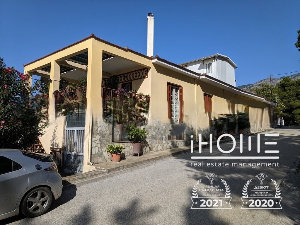 iHOME REAL ESTATE продава китна двуетажна къща в гр. Волос, полуостров Пелион. Къщата е в покрайнините на град Волос, с фантастична гледка към морето и към планината Пелион. Разполага с градина от 200 м2 и лесен достъп от националния път до Волос. Първият етаж е 145 м2 и има следното разпределение: 3 спални, кухня с трапезария, хол с камина, голям балкон/веранда и гараж. Партерният етаж е 250 м2, той е недовършен и може да бъде разделен на 2 или 3 апартамента за инвестиция и даване под наем. Има три плана като инженерни предложение за преустройство. Отоплението е газово и на климатик. Имотът се намира на 10 мин. от морето и плажа, в близост до всички удобства и магазини, но също така е близо до природата и планинските пътеки.
