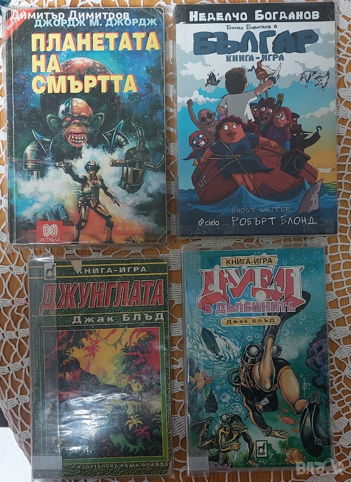 Здравейте! Продавам повтарящите ми се книги-игри на цени от 5 до 40 лв. Цените варират впредвид състоянието на книжното тяло, търсенето и актуалната цена на пазара ако книгата е в продажба. От снимките се вижда ясно, че всяка книга е запечатана в плик с цел да се запази нейното първоначално състояние от пипане, прах, влага и мухъл. При закупуване на 5 книги и нагоре има 10% отстъпка в цената.