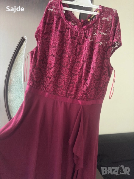 Рокля в бордо, горната част е с дантела, носена е само веднъж