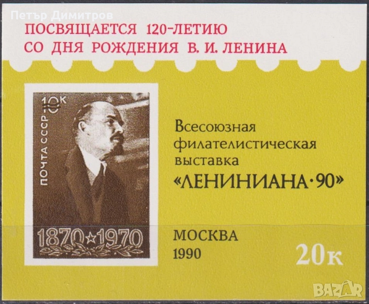 Чист сувенирен блок Ленин Филателна изложба 1990 от СССР.
