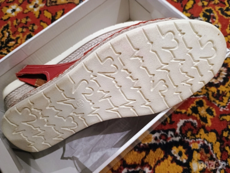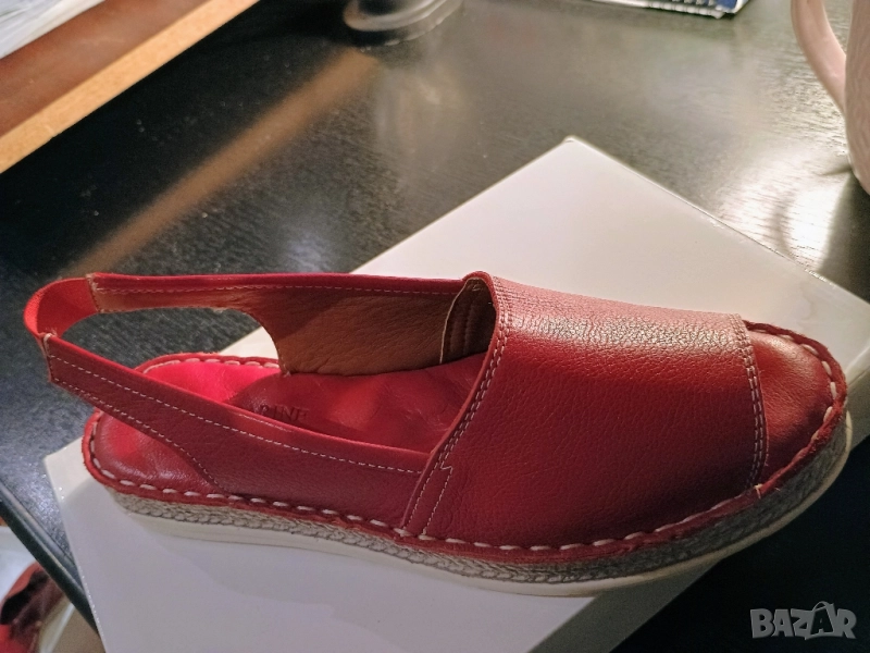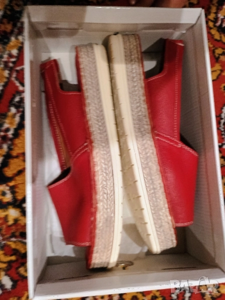 Ежедневни практични дамски обувки номер 38, спортен стил, изработени от еко кожа с удебелено ходило декорирано в стил конопено въже, лицева част червен цвят, нови. Пращам по Еконт, за София може лично предаване.