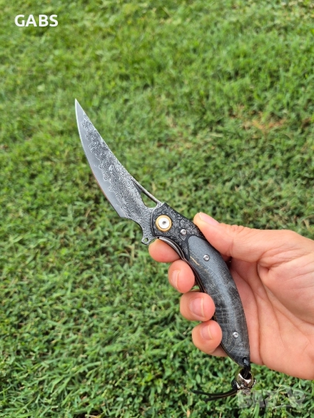 Уникален сгъваем ръчно изработен нож,Дамаска стомана VG10 с кания,SD14