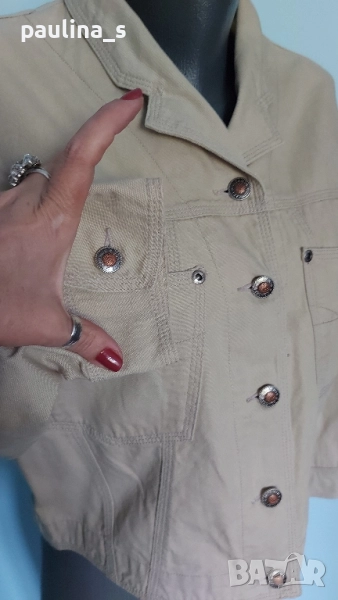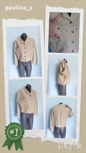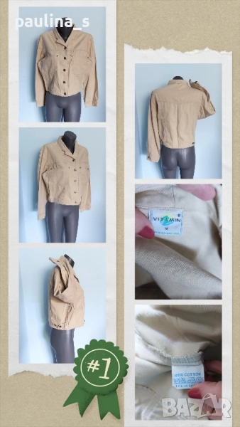 5️⃣ Колаж / Колаж / L / XL - "Vitamin concept". ВИНТИДЖ 1985г! Цената е крайна 39,99лв / 20 евро. Много готино дънково яке в цвят Сахара. Моделът е кроп, с външни отворени джобове и падащи рамене, брандирани копчета и кабси. Не е чисто ново, но е без дефекти.