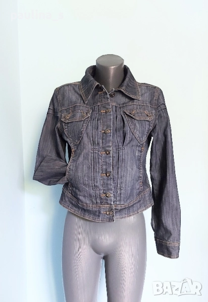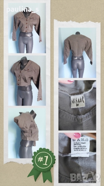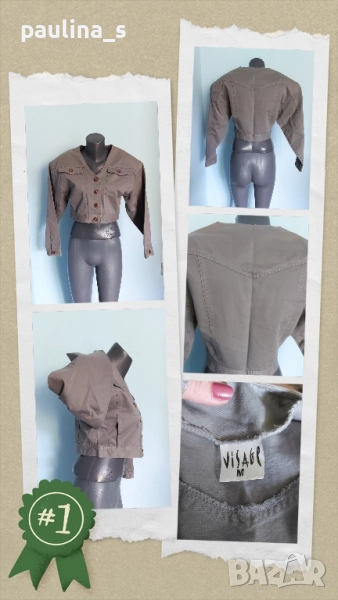 4️⃣. Колаж / Колаж / M / L - "Visage". ВИНТИДЖ 1985г! Цената е крайна 39,99лв / 20 евро. Късо дънково яке с падащи рамене и подплънки. Уникален модел, само една бройка! Материята е памучен Деним, без еластичност, цветът е сив. Копчета са контрастни и декориращи. Моделът е разчупен и много шик, стил 80те години на миналия век. Без дефекти, като ново.