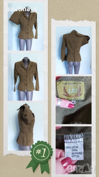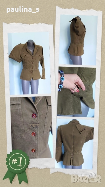 3️⃣. Колаж / S / M - "Lei". ВИНТИДЖ 1985г! Цената е крайна 39,99лв / 20 евро. Дънково яке с разчупен модел в цвят Милитъри. Моделът е втален с цепка отзад, на подобава войнишка куртка. Цветът е екзотичен, дрехата е изумителна, като качество и аутлук, една бройка, без дефекти, като ново.