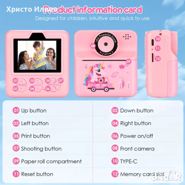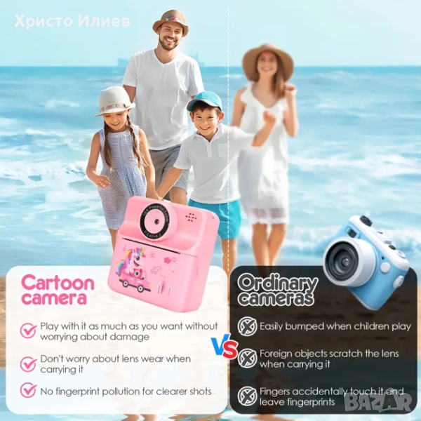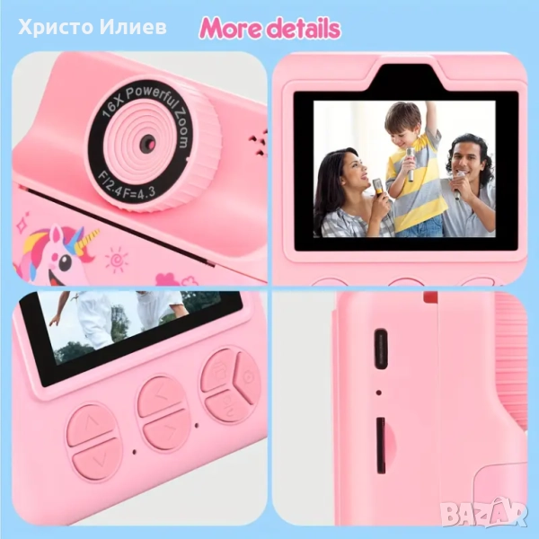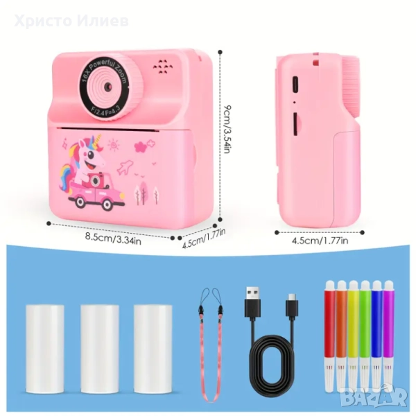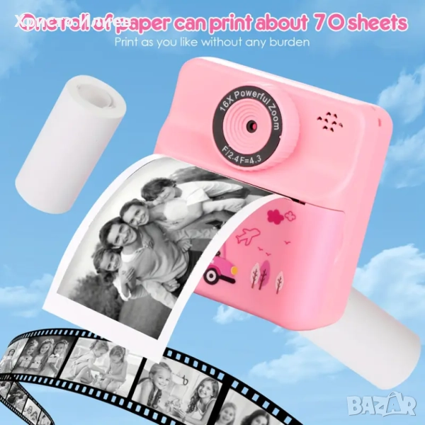 Моментална камера за деца детска камера с функция за печат фотоапарат с вградени игри