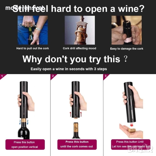 Освен това, отварачката е компактна и лесна за съхранение, което я прави незаменим аксесоар във вашата кухня или бар. С автоматичната отварачка за вино с батерии можете да превърнете отварянето на бутилки в безпроблемно удоволствие.