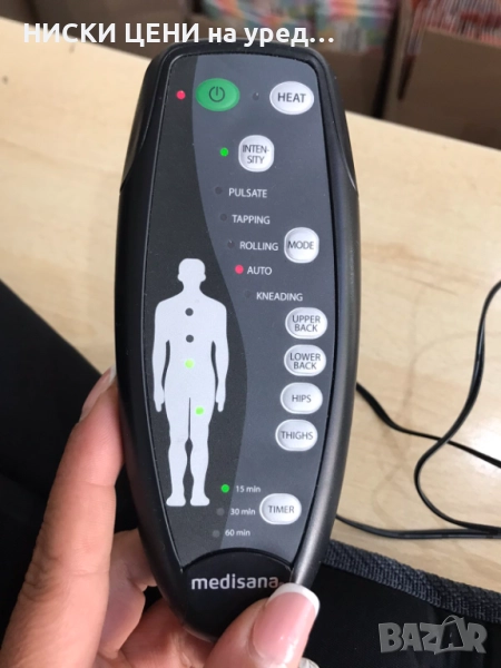 Използвана е, но работи отлично – предлага приятен и релаксиращ масаж за гръб и седалище, подходяща за дома или офиса.
