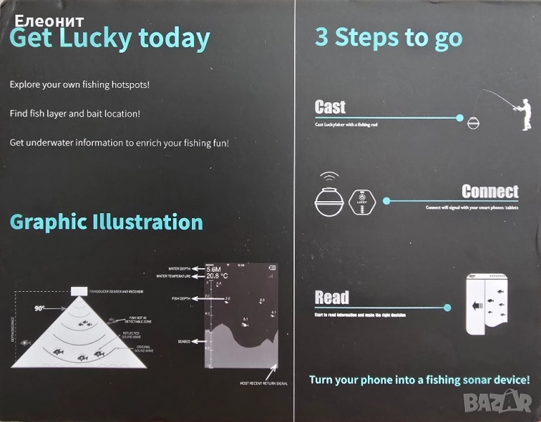 Сонарните данни се предават на приемника, който се свързва с приложението, така че можете да получите представа какво се случва под повърхността на водата - директно от екрана на телефона си!