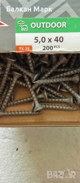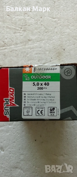 Dyna Plus Outdoor C4 – Винтове за дърво, външна употреба, пълна резба (5x40 мм, 200 бр) Представяме ви Dyna Plus Outdoor C4 – висококачествени винтове тип „торнадо“ за външна употреба. Уникалната им резба с въртяща се „вихрушка“ издърпва дървените части плътно една към друга и предотвратява разцепване без предварително пробиване. Характеристики: Размер: 5x40 мм, опаковка: 200 бр C4 – корозионна устойчивост за агресивни външни условия Нанотехнологично покритие: 2500 часа солен спрей тест (ASTM B117) Подходящи за тераси, фасади и дървени конструкции Лесен и здрав монтаж, устойчиви на ръжда и атмосферни влияния 📦 Доставка с Еконт до цялата страна 🚚 Безплатна доставка при поръчки над 49 лв 🧰 Възможност за комбиниране с други обяви за безплатна доставка