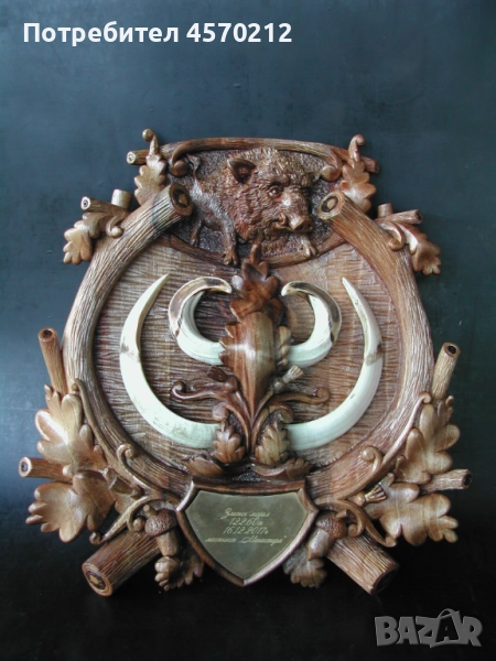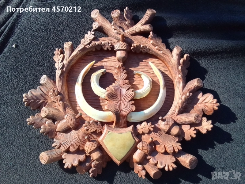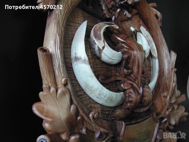 Поставка за ловен трофей, Поставка за глиги, Дърворезба по поръчка, Поставка за зъби от диво прасе
