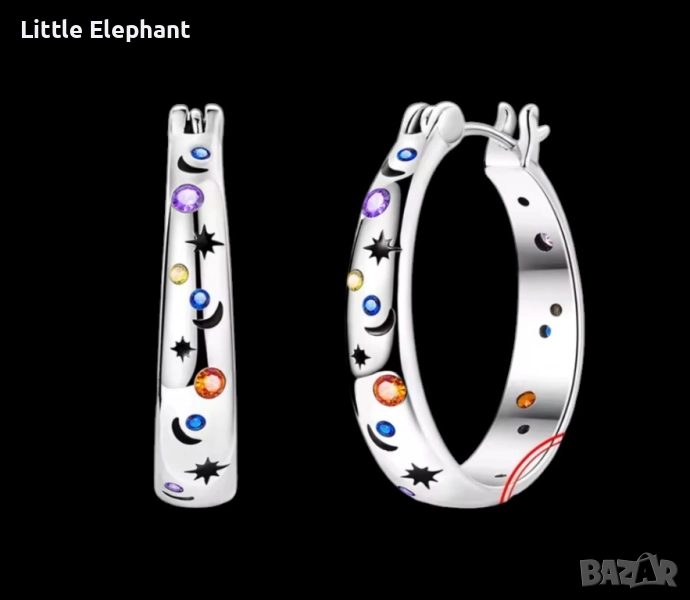 Сребърни висящи обеци халки"Moon/shining stars",колекция"Famouse"/нови → Обява 51444157