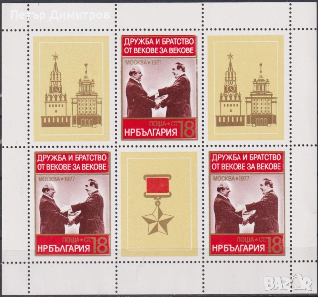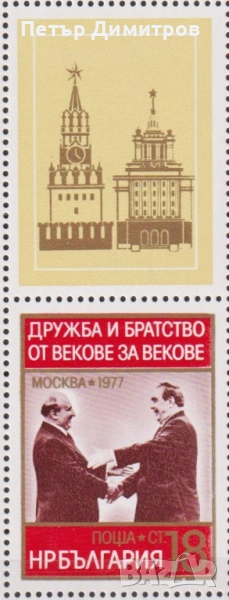 1. Чиста марка + винетка Дружба и братство Брежнев Живков 1977 България. Цена 0,40 лева Цената е за ЕДНА марка + винетка (сн. 1, сн. 2 и сн. 3)