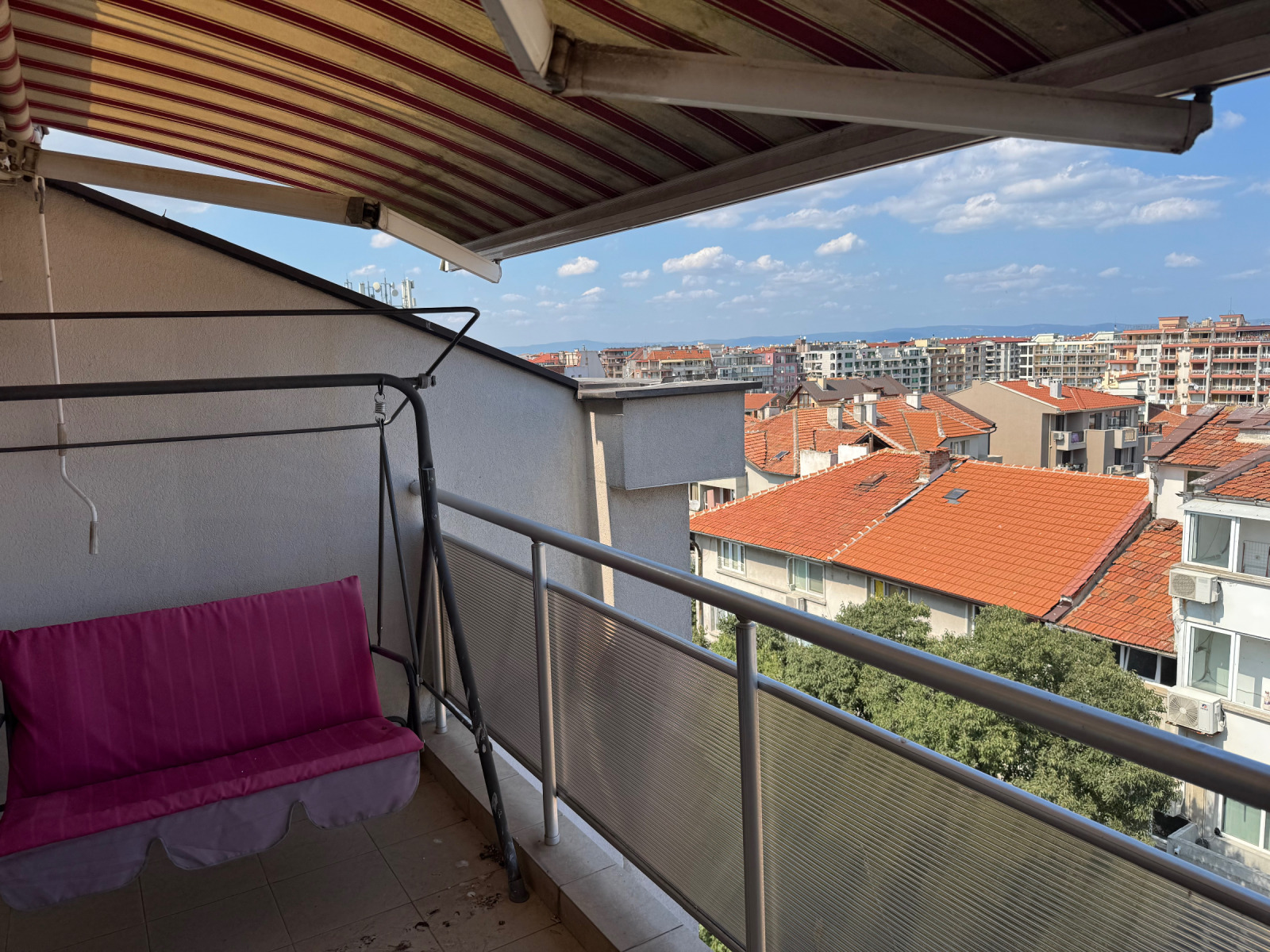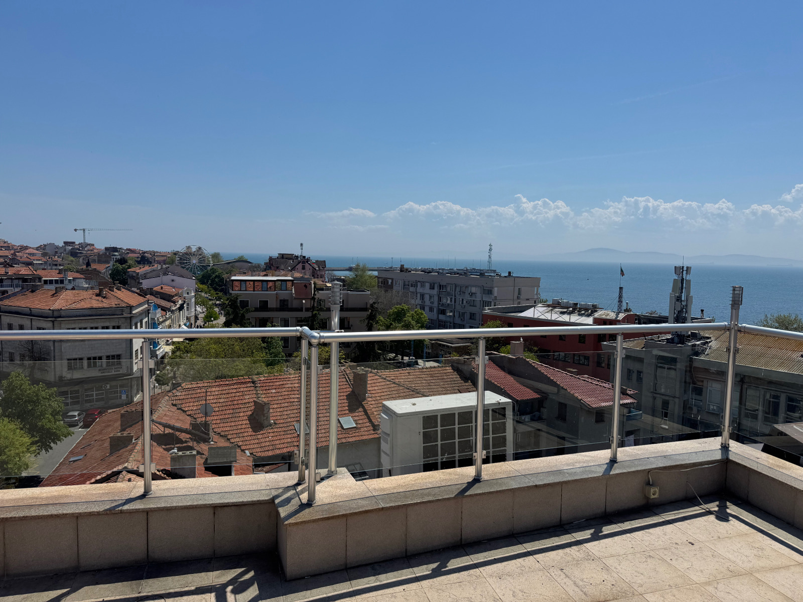 Отгоре над апартамента се намира уникална тераса с гледка 360 оборудвана с чешма, градински мебели, стъклени парапети.