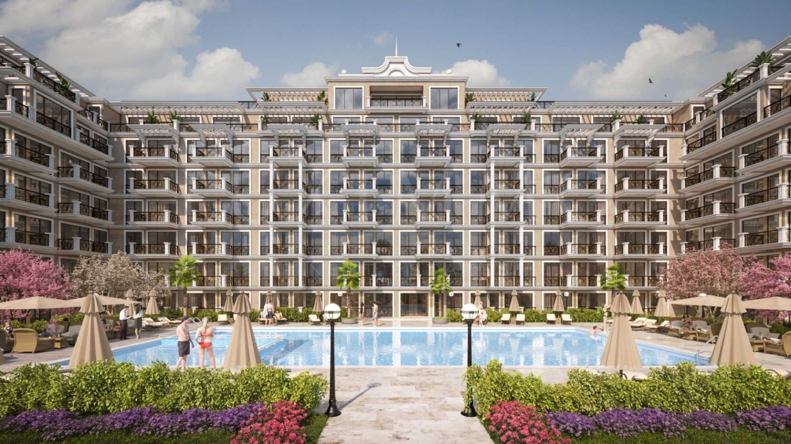 Комплексът е с модерна архитектура, разполага с ново поколение асансьори и е снабден с всички съвременни удобства. Общите части включват басейн, озеленени пространства, видеонаблюдение и контролиран достъп само за собственици и техните гости, което гарантира спокойствие, сигурност и комфорт.
