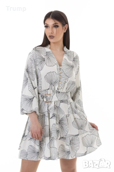 Елегантна ежедневна рокля, нежен десен, листа в черно → Обява 51445357