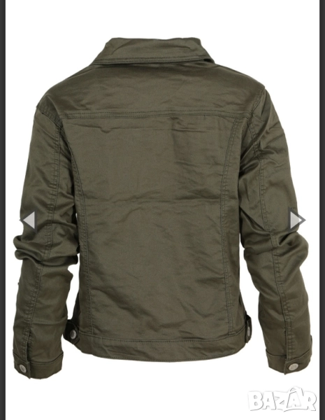 Дамско яке от плат подобен на дънков, цвят Каки. Купено от EXPLOSI за 50 лв и обличано 2 пъти. Плата е мек и има еластичност. По етикет е 2XL.