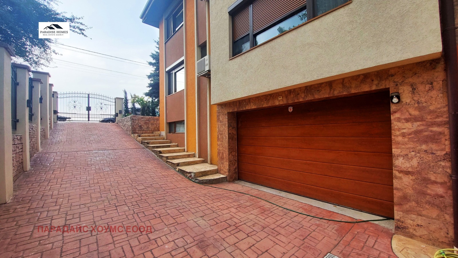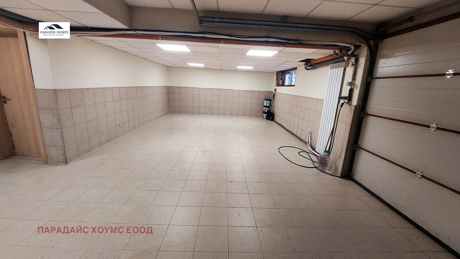 - гараж - двоен гараж с площ от 35.06 кв.м. Към него има допълнително складово помещение .Възможност за паркиране на трети автомобил пред входа на гаража. Входа е посредсвом ролетна щора. Топла връзка към ателието и апартамента.