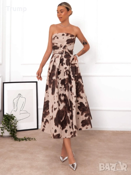 Елегантна стилна рокля тип корсет, ефектен десен → Обява 51446286