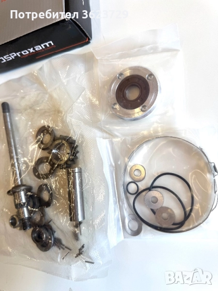 Комплектът е с железни шайби и няма опасност от счупване и повреда на двигателят.
