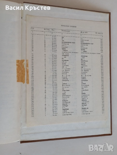 В края на речника има прикрепване на страници 542-543 със тиксо, както и листа с печатни грешки (сн.13,14).