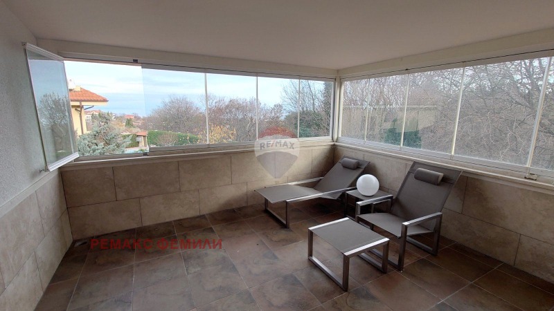Имота е изцяло с югоизточно изложение и панорама към морето. Напълно завършена, луксозно обзаведена, висок клас на заложени материали и довършителни елементи. Готова за нанасяне и обитаване.