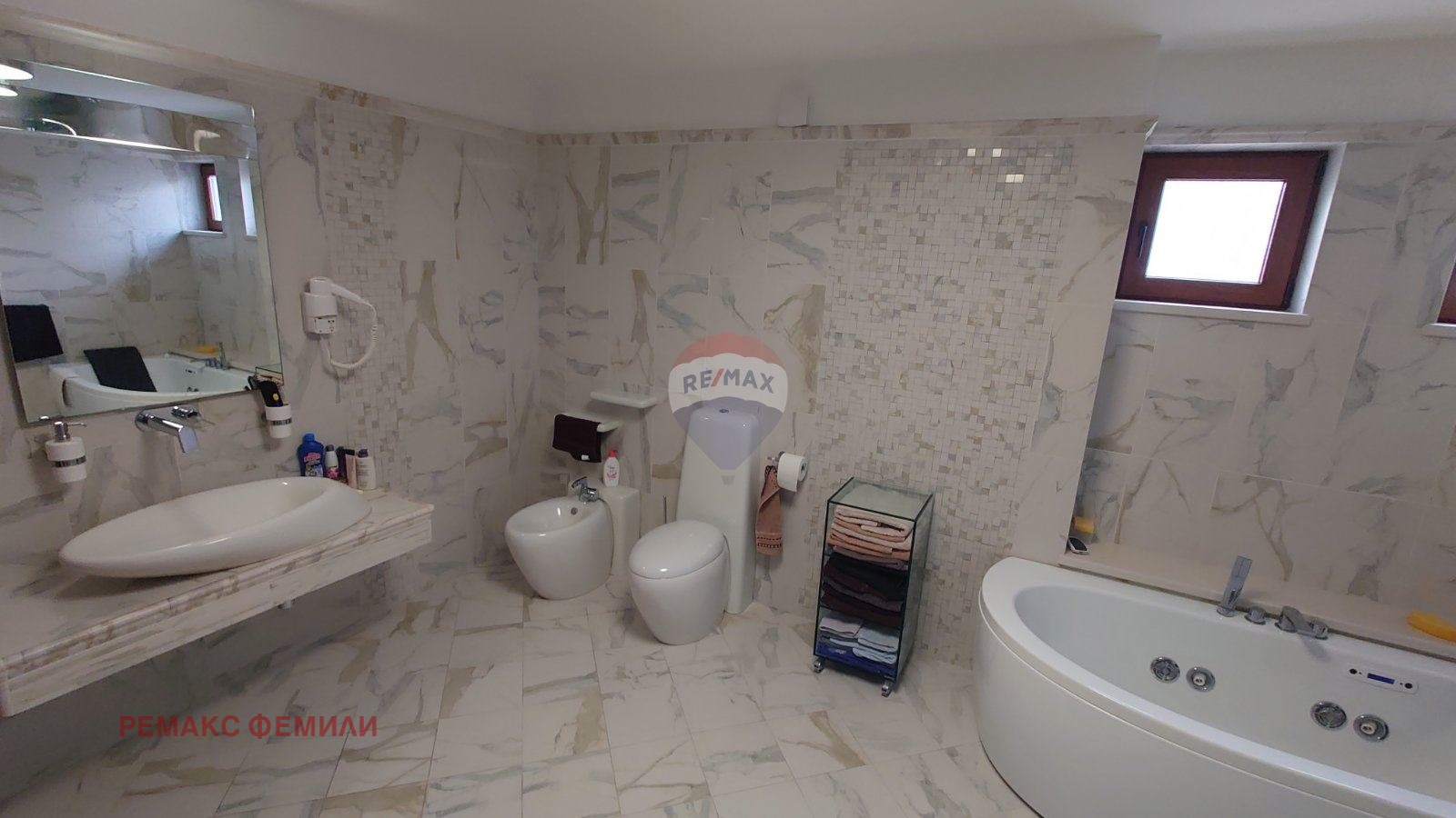 Къщата е оборудвана с машина за централно отопление и охлаждане. А всяка стая допълнително е снабдена с климатик Daikin .