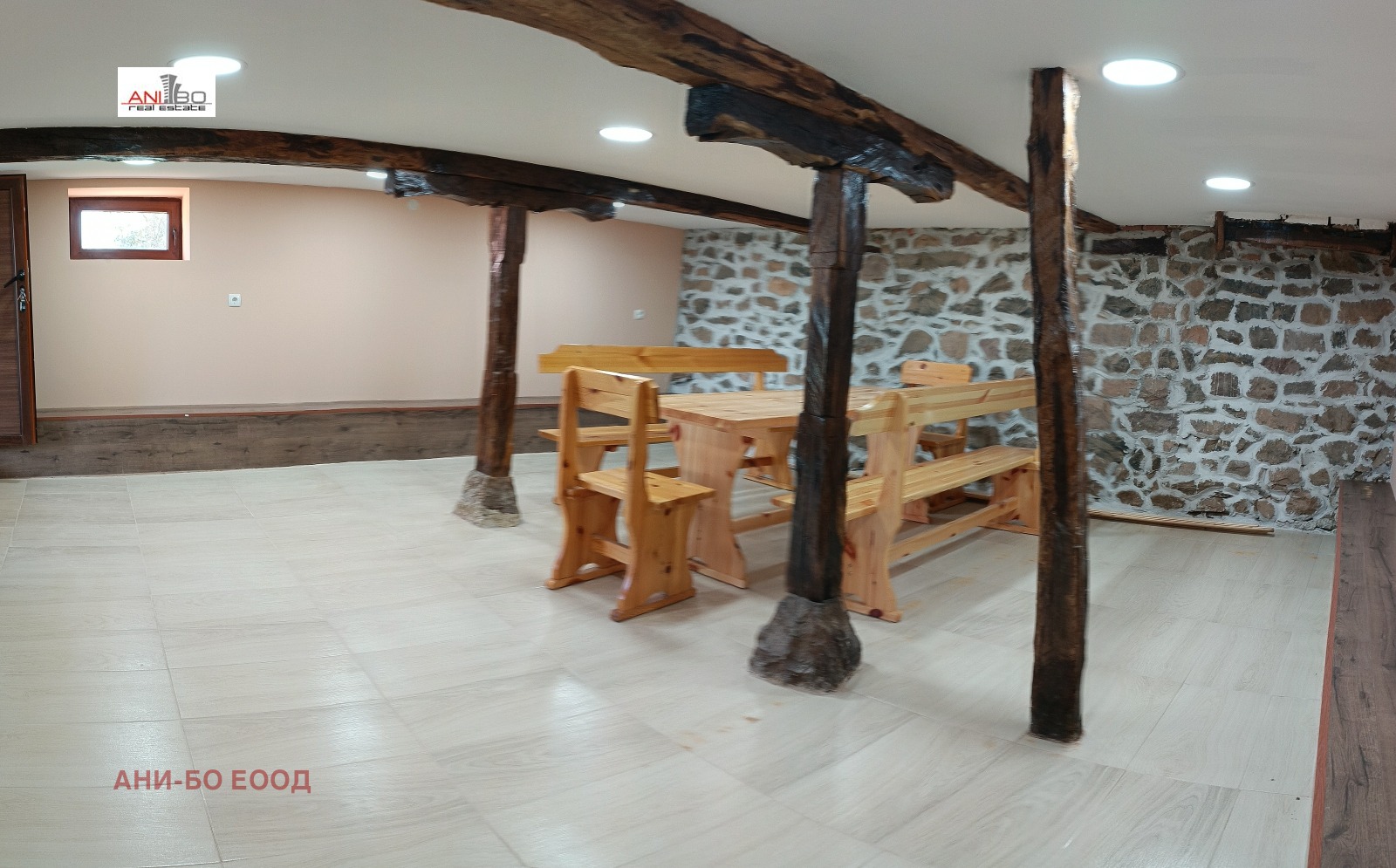 На приземния етаж е разположено помещение от 30 кв. м, пригодено за механа с автентични дървени греди, настилка от теракот, каменни стени. Таванът е изолиран и боядисан. На етажа се намира и мазето на къщата с пощ 20 кв.м.