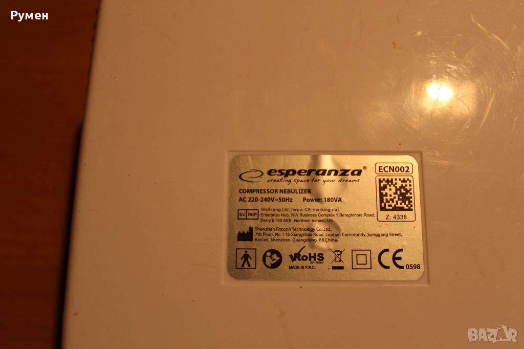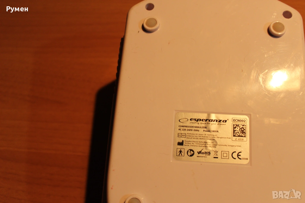 В комплекта: инхалатор – компресорен, адаптер за захранване
