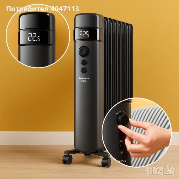 Мощност: 1500W; Нива на мощност: 3; Нагревателни елементи: 7; Температурен диапазон: 5–35°C; Режим: ECO; Таймер: програмируем; Дисплей: дигитален; Индикатор за работа: да; Колела: 4, мултидирекционални; Подходящ за помещения до 15m²;