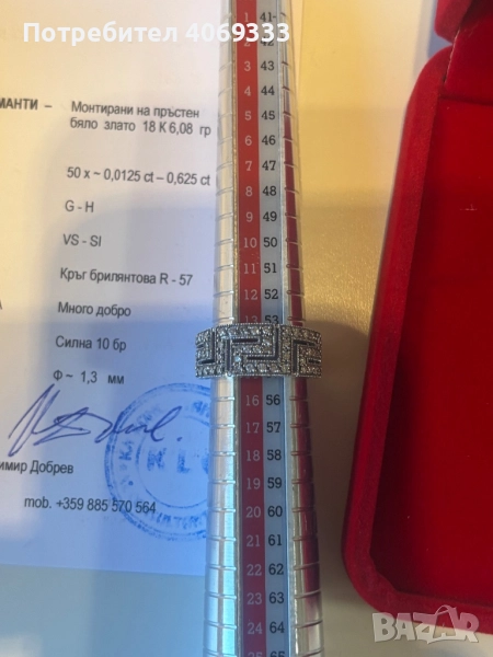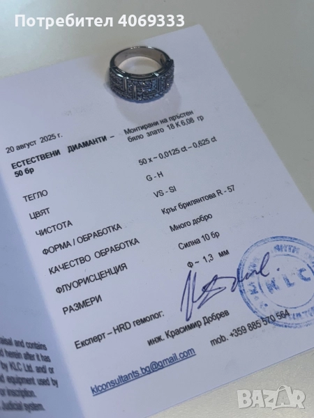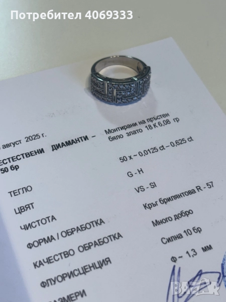 💍Пръстен от бяло 18 каратово злато С 50бр естествени диаманти 💎 54р-р 6.08гр → Обява 51449579