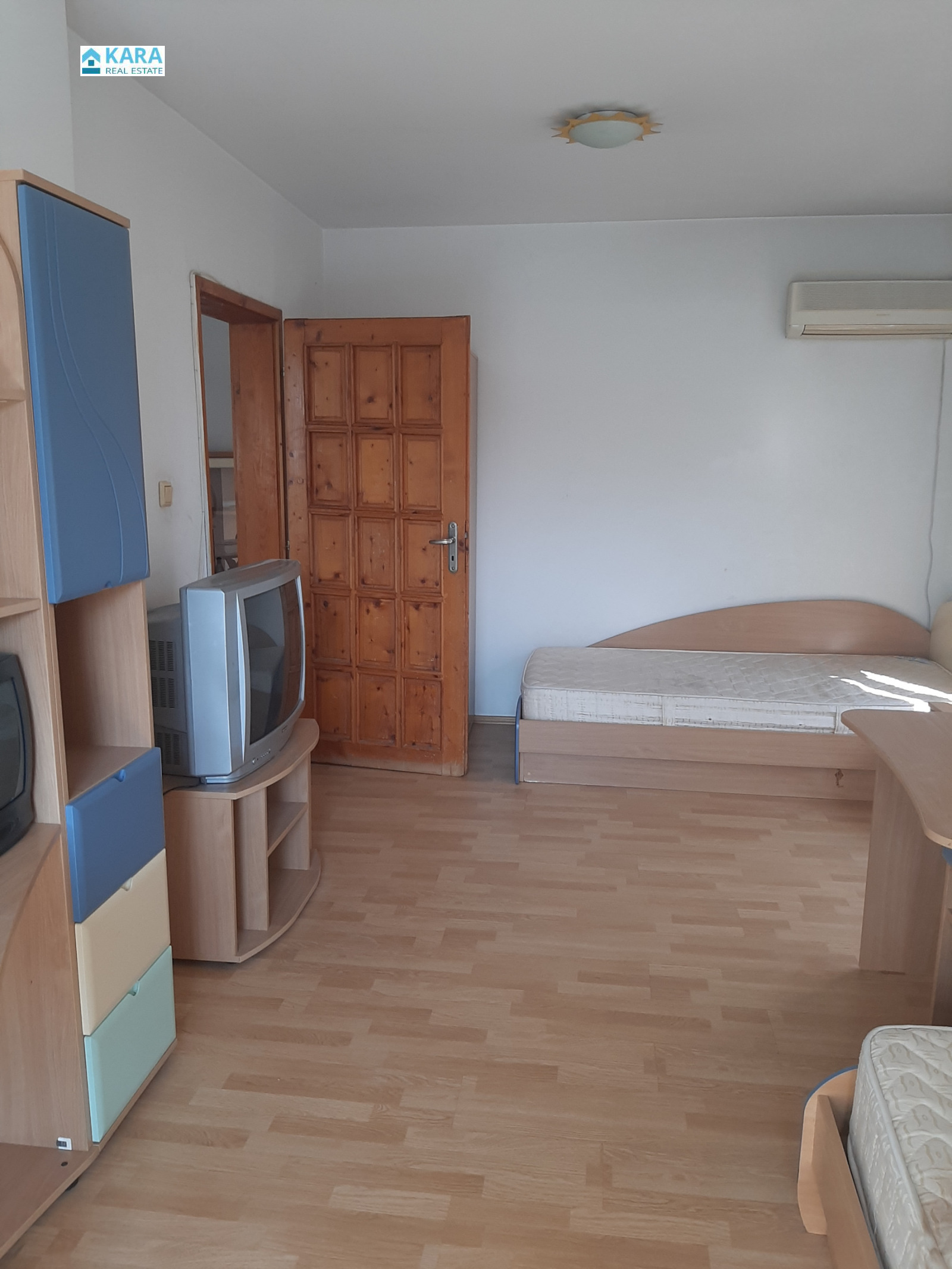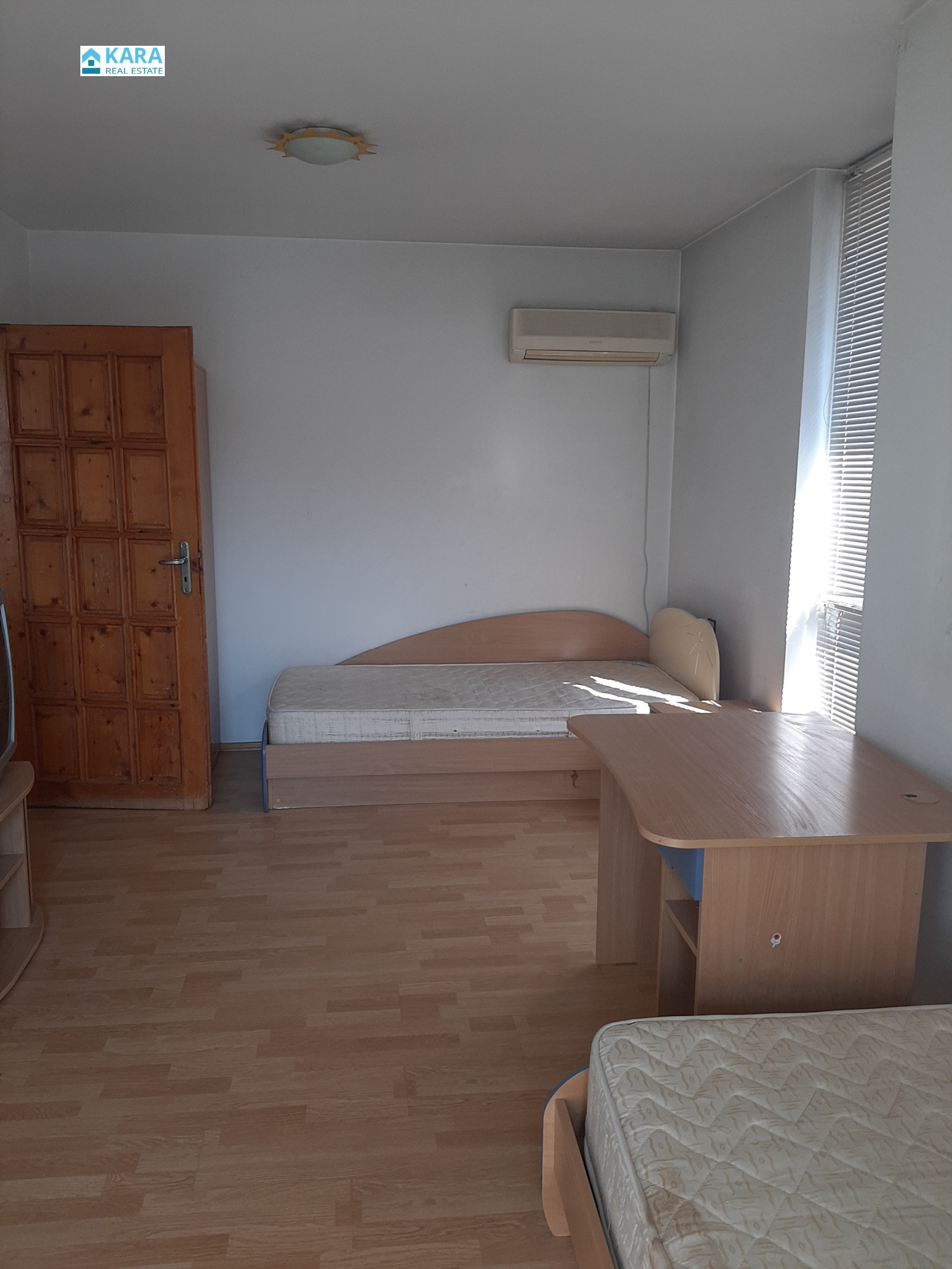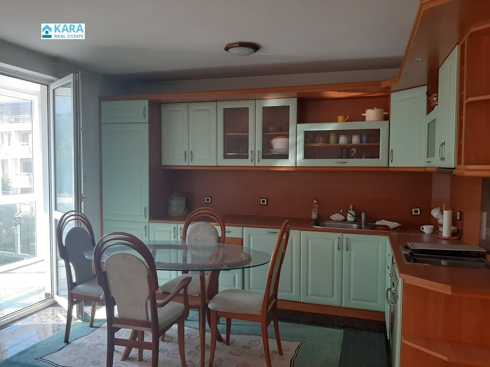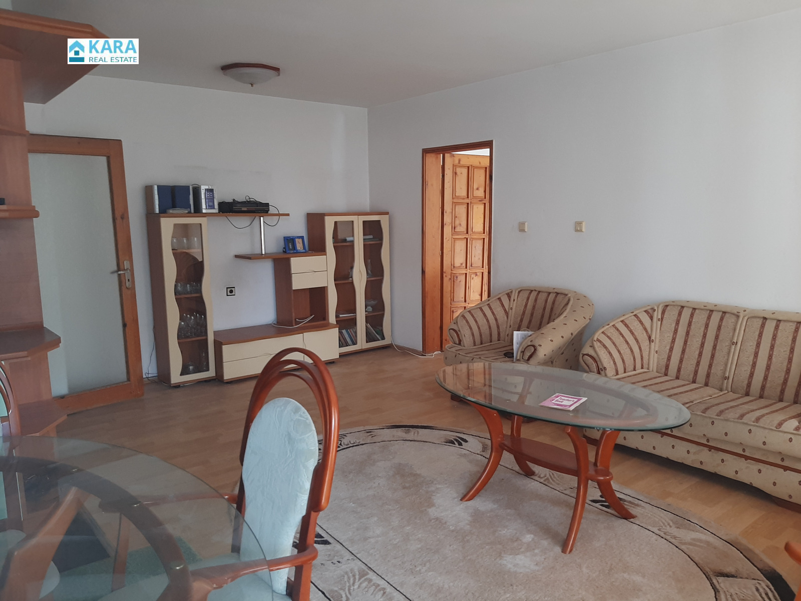 Продава се тристаен апартамент в центъра на гр. Кърджали ( зад Общината ). Жилището е с площ 109 кв. м, намира се на трети жилищен етаж в кооперация с ограничен достъп. Апартаментът се състои от хол с кухненски кът, две спални, баня, отделна тоалетна и три тераси. Жилището се продава с наличното обзавеждане и ел. уреди, които включват: пералня със сушилня, съдомиялна, хладилник с фризер, фурна с керамичен котлон и три климатика. Към апартамента се продава и подземен гараж с площ 16,22 кв. м в същата сграда. Цената е обща за жилището с гаража.