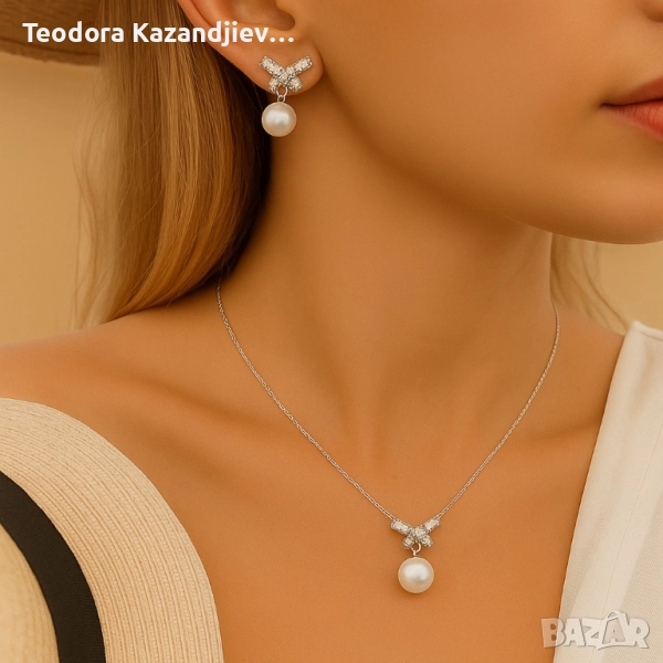 Комплект колие и обеци с перли и панделки → Обява 51450424