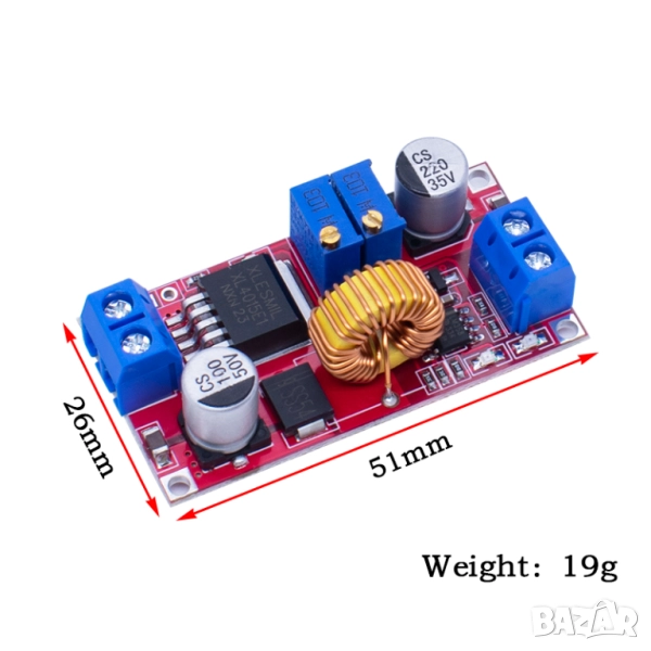 Защо да се задоволявате с по-малко? С основата си от изключително ефективния чип XL4015, този конвертор е проектиран за това да бъде сърцето на вашите енергоемки applications. Той комбинира raw мощ с прецизен контрол. Интегрираният волтметър ви дава яснота, а уникалната функция за ограничаване на тока (constant current - CC) го прави перфектен за безопасен заряд на батерии и захранване на чувствителни LED проекти. Масивният радиатор и качествената конструкция гарантират стабилност дори на границата от 75W.