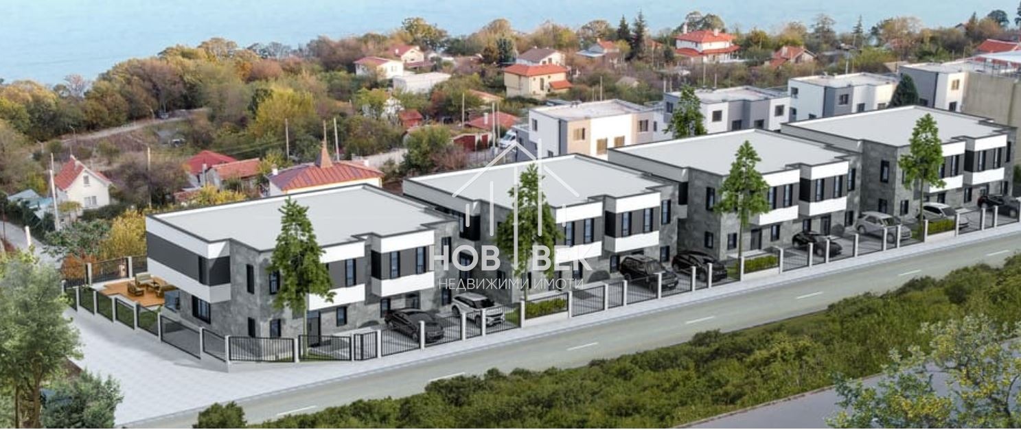 Предлагаме на вашето внимание две къщи, част от комплекс, разположен в гр. Варна, м-т Прибой, всяка от тях на цена 299000Е. Нескриваема морска панорама от кота 0. Къщите са изпълнени изцяло с висококачествени и материали и се издават по БДС. Съвременен дизайн и изцяло функционално вътрешно разпределение. Състоят се от голям дневен тракт с кабинет и санитарен възел на ниво 1 и три спални, едната от които със собствен дрешник, санитарен възел, както и още два санитарни възела на втори етаж. Голяма веранда пред къщата. Едната къща е с две, а другата с три паркоместа. Комплексът се състои от 8 къщи (близнаци) всяка от които в обособен собствен двор. Изцяло асфалтов достъп към него. Изключително тихо и спокойно място намиращо се само на 10 мин от центъра на града.