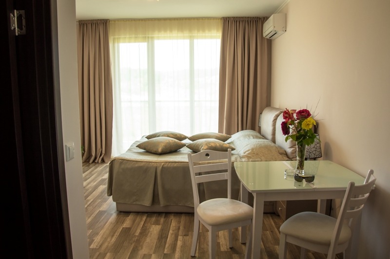 Всеки апартамент е оборудван с електрически бойлер и климатик във всяка стая.