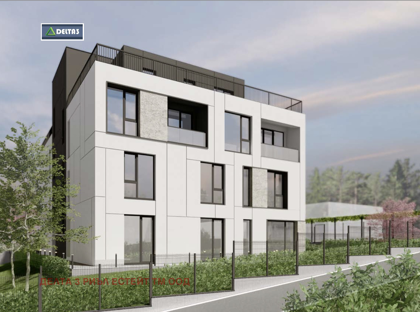 Фасадите ще бъдат покрити със структурна мазилка. Визията им е подчертана с декоративни хоризонтални и вертикални фуги. Терасите са обезопасени със стъклени парапети. Плосък покрив, покрит с два пласта италианска хидроизолация.