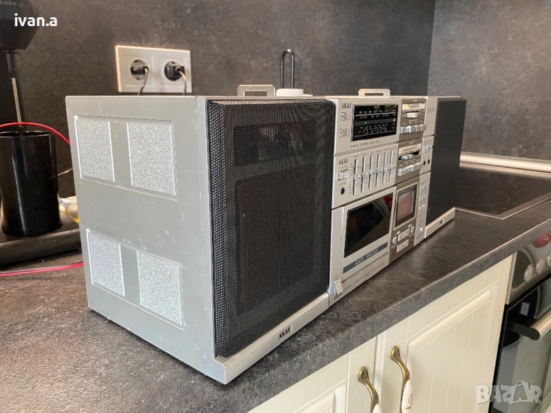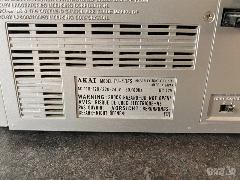 Akai PJ-43FS. В добро външно състояние, дребни драскотини по външния вид. Липсва дръжката. Радиото работи, касетата е за ремонт, потенциометрите са за почистване. При желание пращам и клип, на който се виждат забележките. Друг такъв в Бг поне аз не съм виждал. Не е отварян и не е правен опит за ремонт. Цена 400 лв