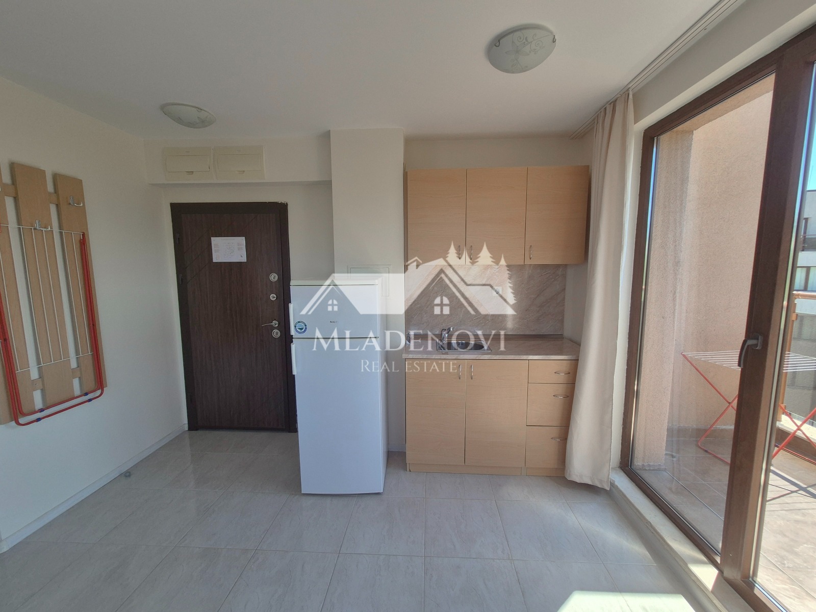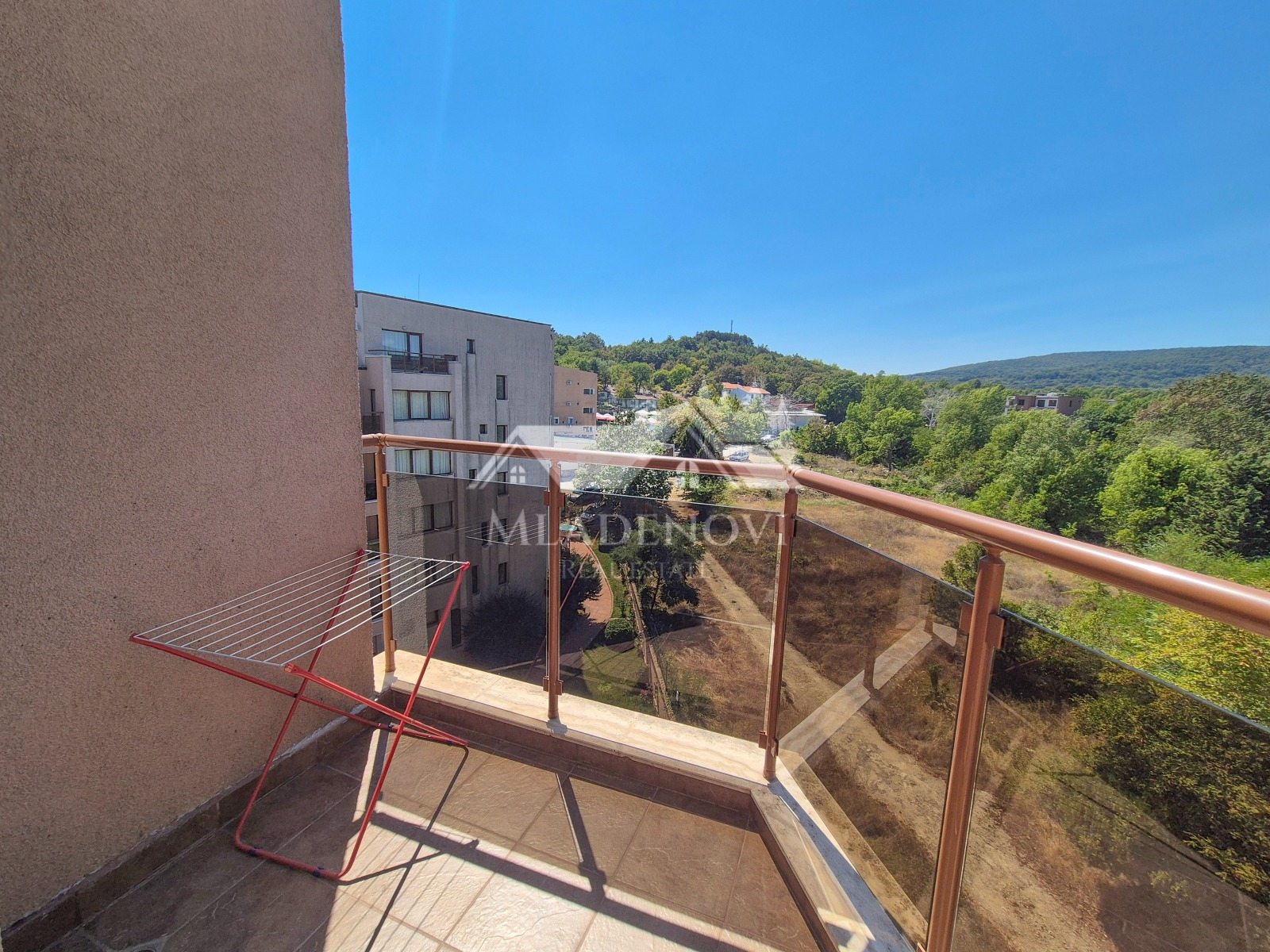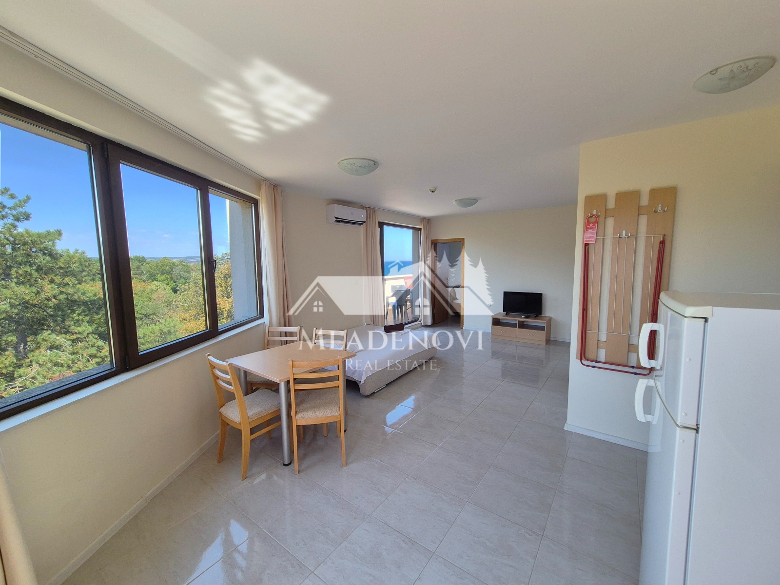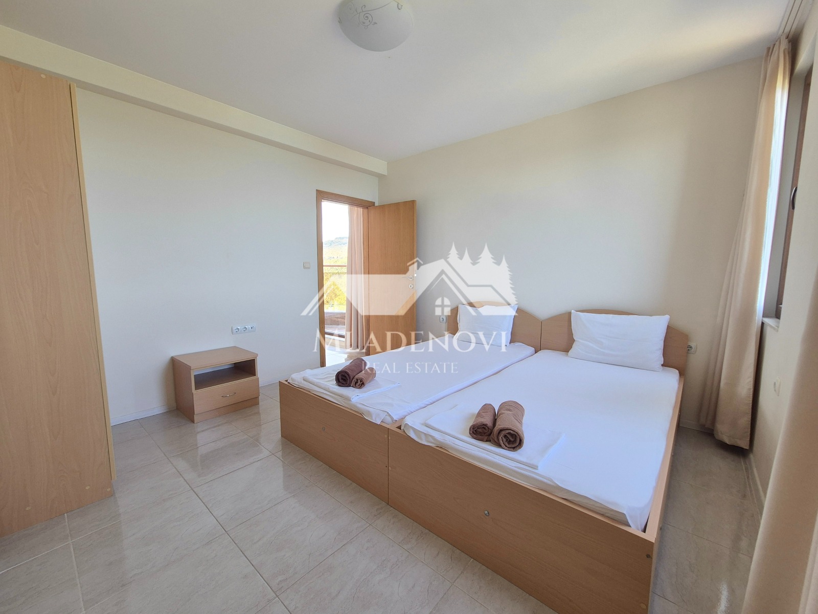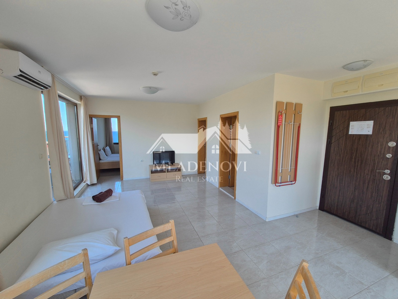 Обзор. На територията на комплекса има басейн, ресторант и кафене на пешеходно разстояние. Осигурена е и денонощна охрана и видеонаблюдение. Достъпът до плажа е лесен и удобен. Имотът се състои от всекидневна с кухненски кът, две тераси, една по-малка и една по-голяма, от която се открива красива гледка към морето, две самостоятелни спални, като една от тях има трета тераса с уникална гледка и баня с тоалетна. Продава се с наличното обзавеждане и оборудване. Във всяка стая има монтирани климатици. Възможност за закупуване на паркомясто в подземен паркинг на сградата. Таксата поддръжка е 12 Евро/кв.м. без ДДС. Имотът е подходящ за закупуване, както с цел за лично ползване, така и за инвестиция, с цел отдаване под наем и нощувки, което се предлага като услуга от управляващата компания.