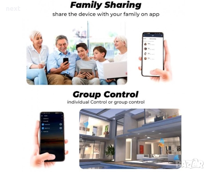 + Гласов контрол: Поддържайте гласови асистенти като Tmall Genie, Alexa, Google Home и реализирайте функции като превключватели; „Алекса, включи кухненските лампи.“ Можете да включите светлините с едно изречение и да се насладите на удобен интелигентен живот.