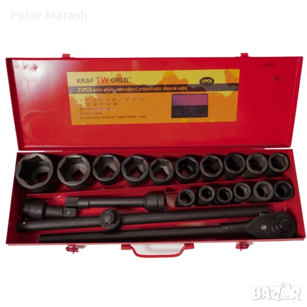 Професионално гедоре 21 части KraftWorld – ударни вложки до 50 мм + метална кутия